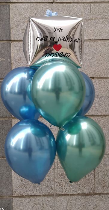 זר בלונים 1 בלון מיילר מרובע 6 בלוני הליום