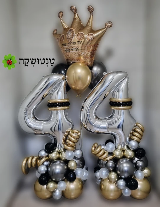 סידור בלונים לגיל 44 זהב כסף ושחור