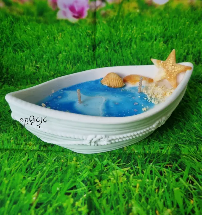 נר בצורת סירה עם ריח חוף ים
