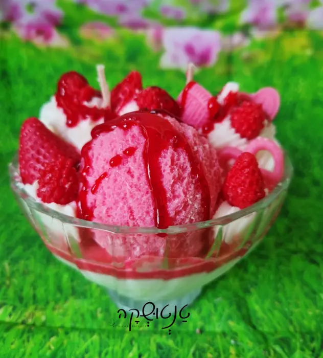 הנר מגיע בכוס שקופה המדגישה את מרקם השכבות, ומפיץ ניחוח מתקתק ועדין של תות ווניל