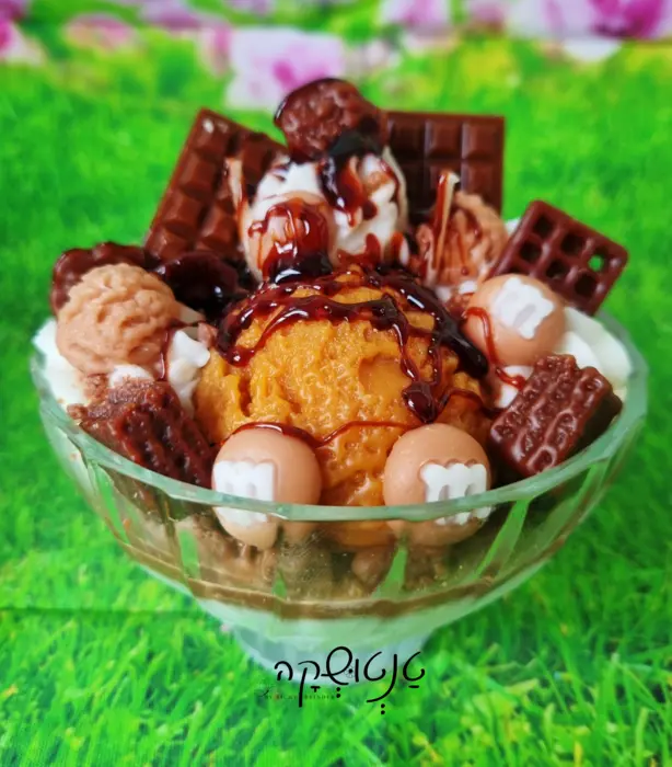 🍫 נר קינוח שוקולד בריח שוקולד וקרמל + m&m